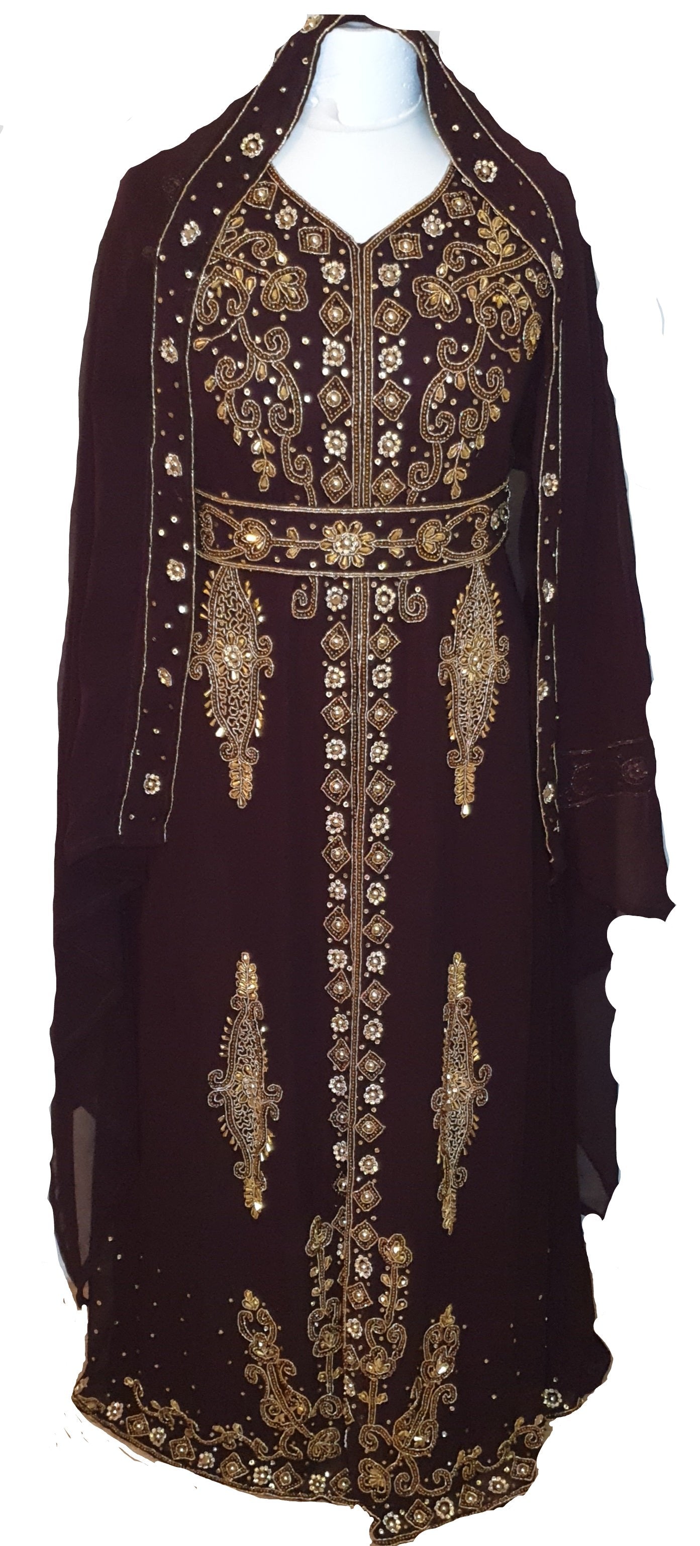 | Package Details | 3pc Piece 100 % georgette gown 1x Headwrap 1× gown 1x belt | |
