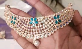 Elevate any outfit with our Rose Gold Choker Set, adorned with stunning emerald green stones. This set adds a touch of elegance and sophistication to any look. Perfect for any occasion, this versatile piece is a must-have in your jewelry collection.