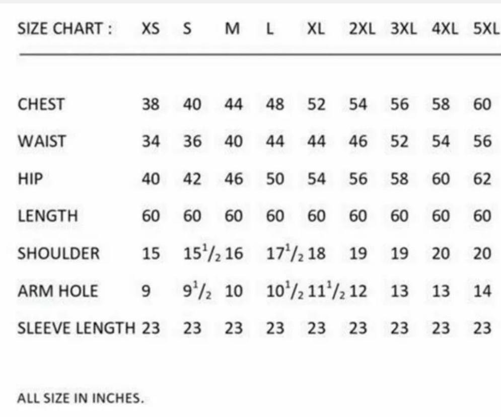 | Height | As Per customer Order ( From our Size Chart ) | |
