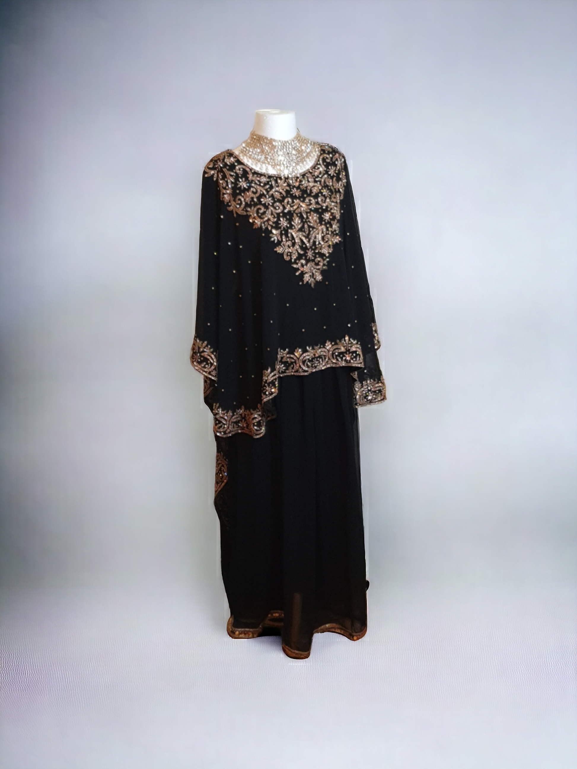 Gown with Luxurious Hand Embellish Menorah Cape Shawl
