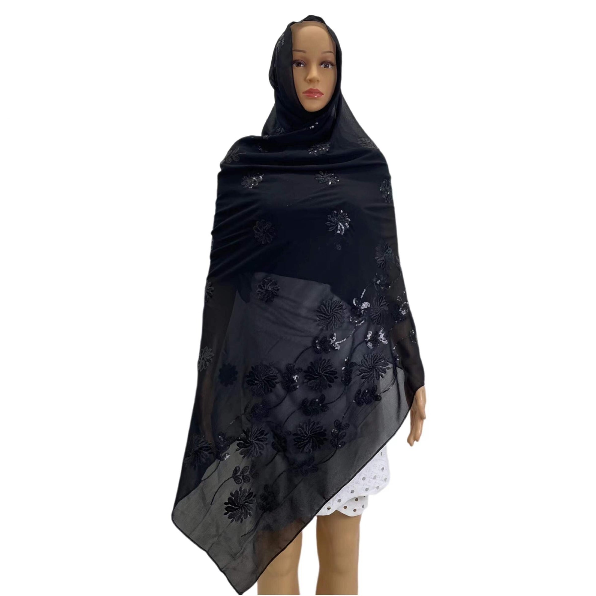 Soft Chiffon Fabric Sequins Embroidery Shawl Wrap