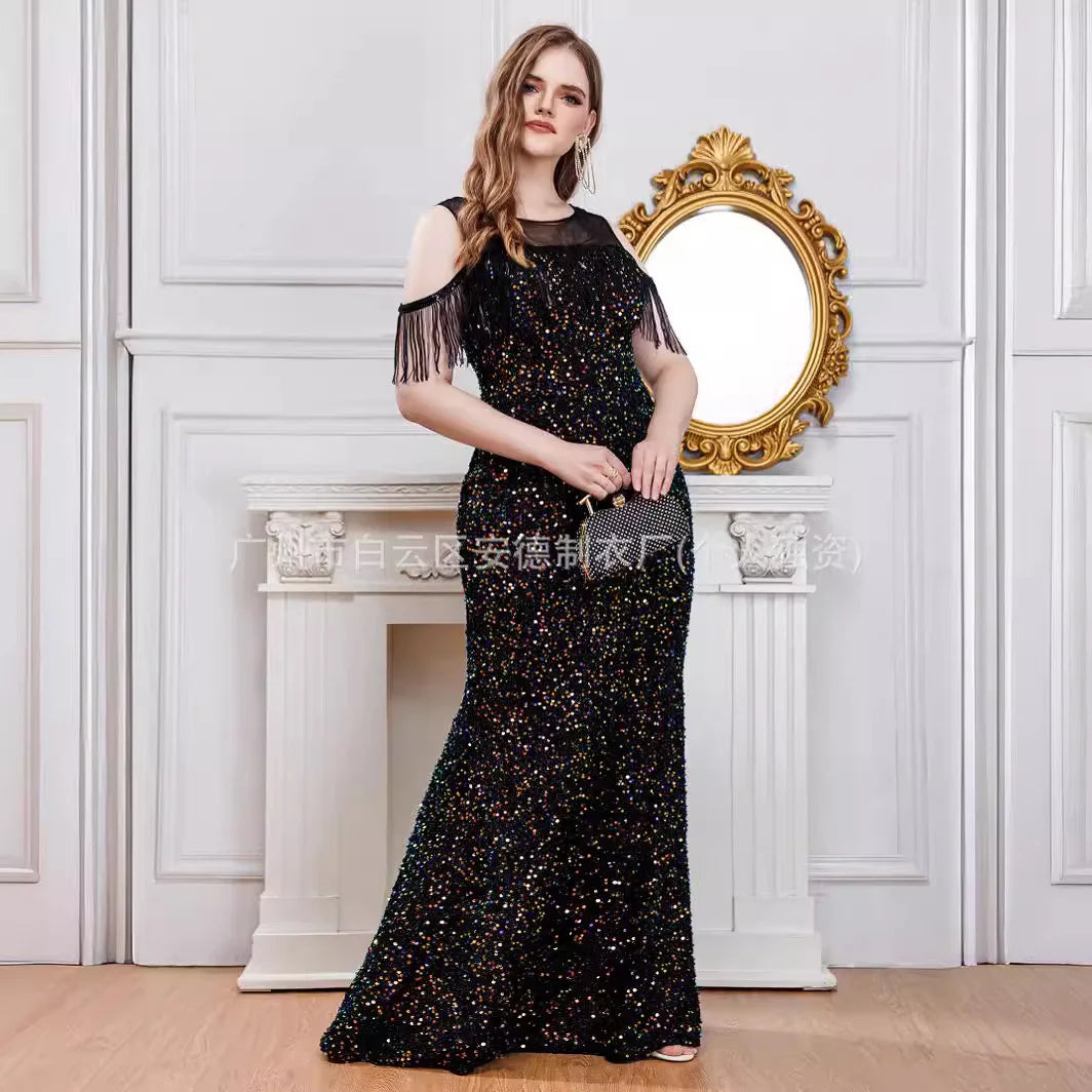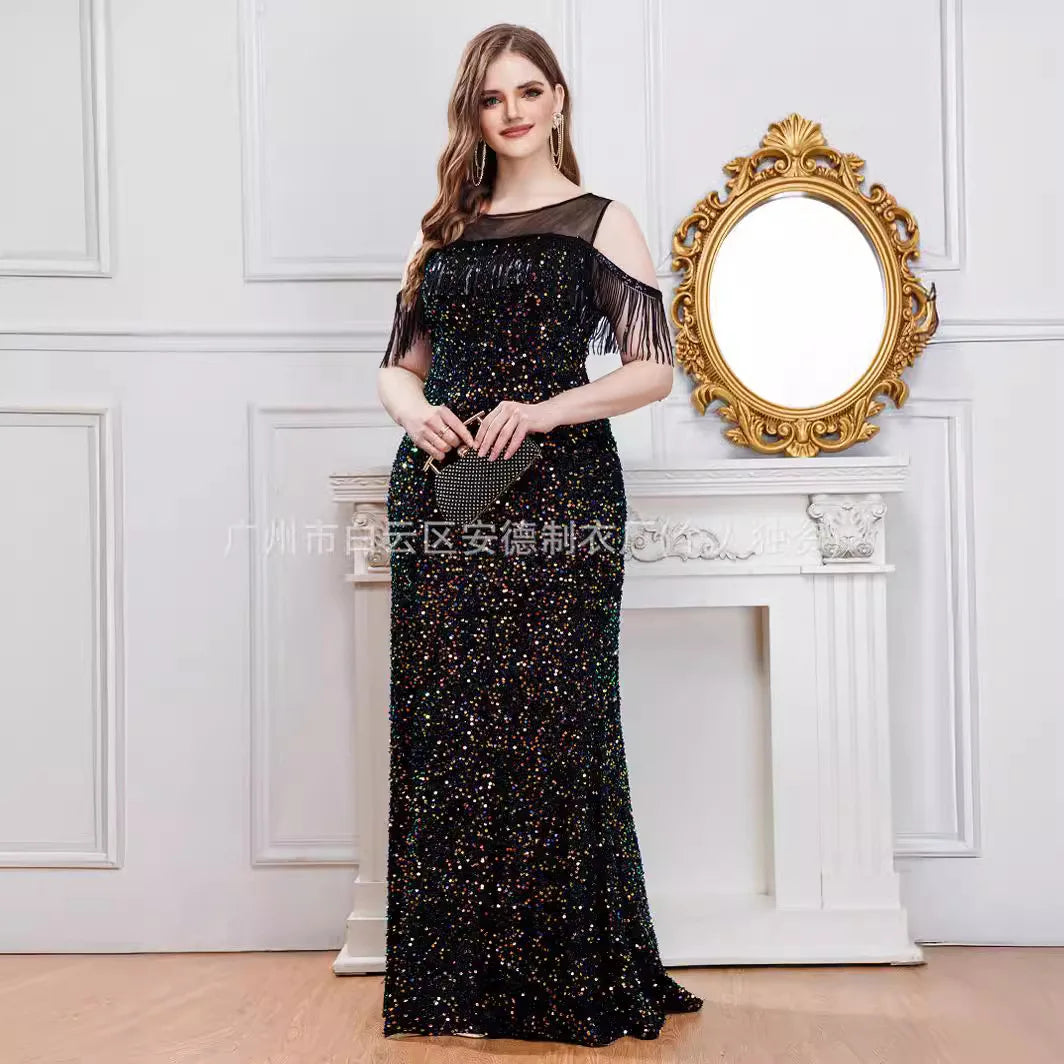 Plus Size Elegant Long Dress With Sequined Tassel Fish Tail Evening GOWN