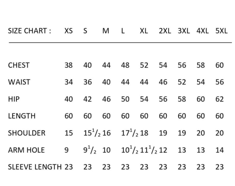 | Height | As Per customer Order ( From our Size Chart ) |